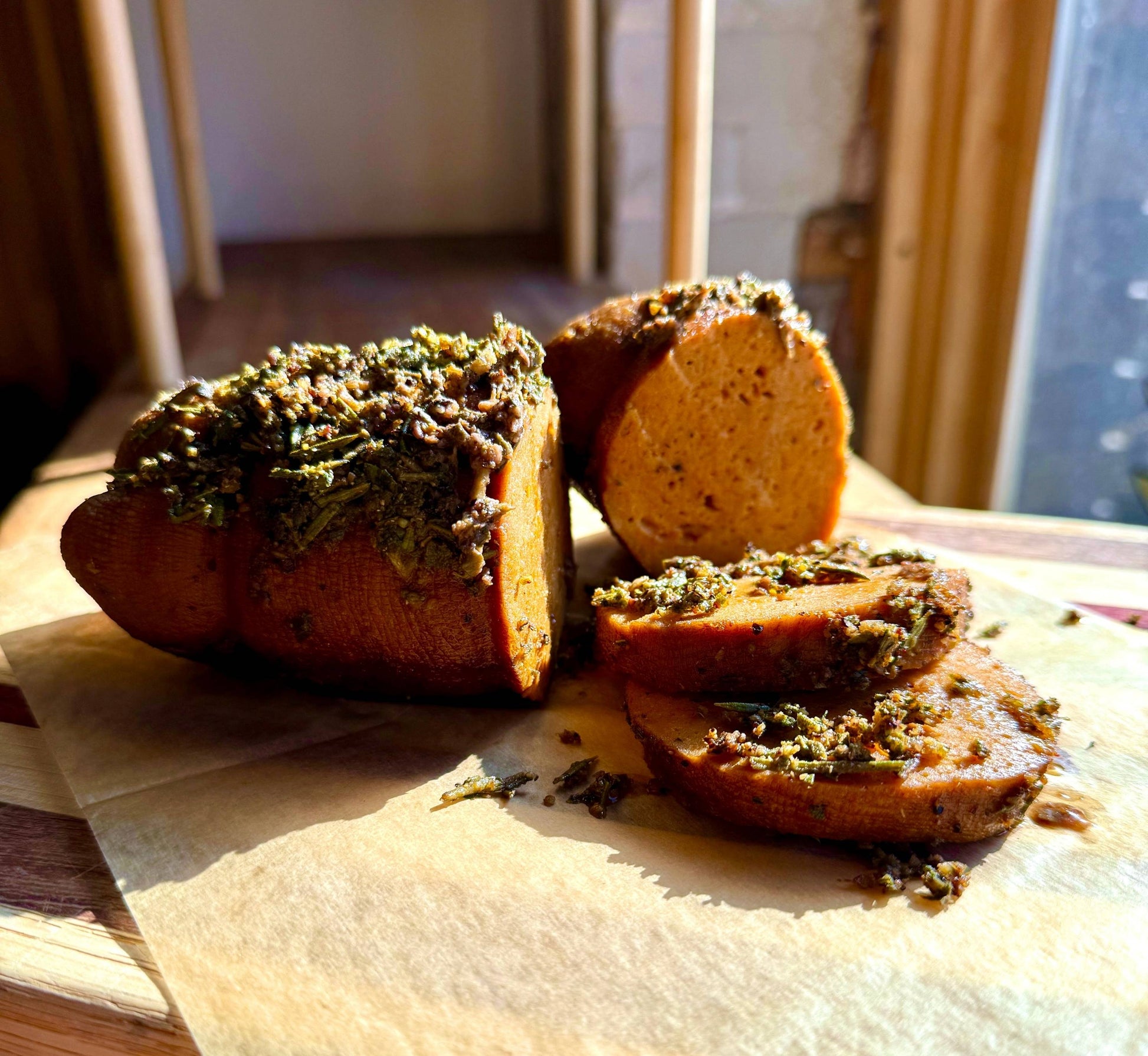 Allergy Statement: All products from the Herbivorous Butcher are processed in a facility that uses wheat, soy, sesame seeds, and tree nuts.